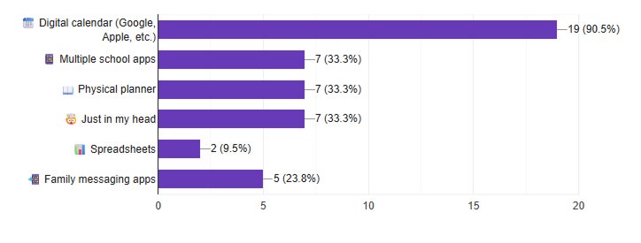 “I have to check multiple apps (10+) for all my children’s school and non-school related activities is so stressful and consumes so much of my energy and time”